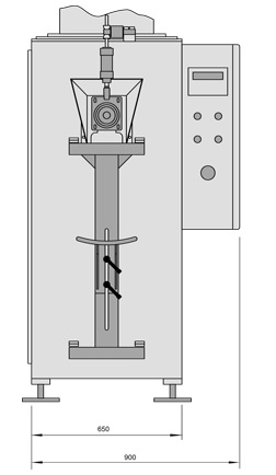 A partir de una bobina plana de film plástico, produce el saco, lo llena y lo cierra dentro de un ciclo completamente automático.