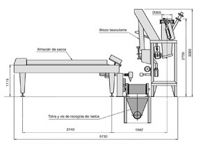 - Velocidad mecánica: 1.400 sacos/hora.