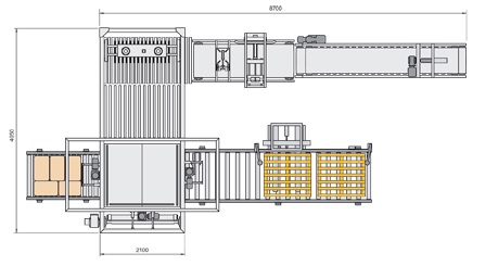 La flexibilidad que aporta este tipo de instalaciones permiten trabajar con varios formatos y estaciones de paletizado de manera simultánea (hasta 6 palets simultáneos). Los cambios de formato y configuración del mosaico previamente configurados se realizan de forma rápida y sencilla desde el terminal operador.